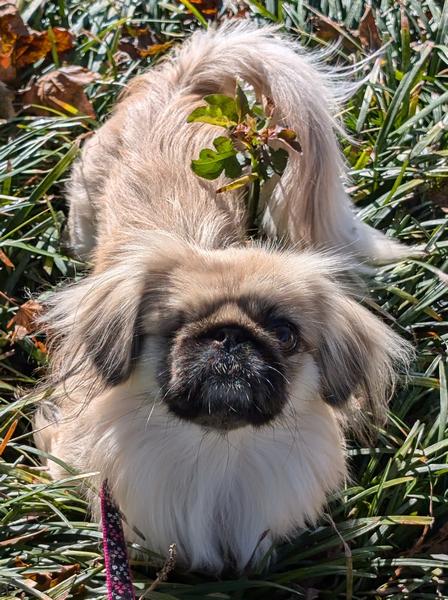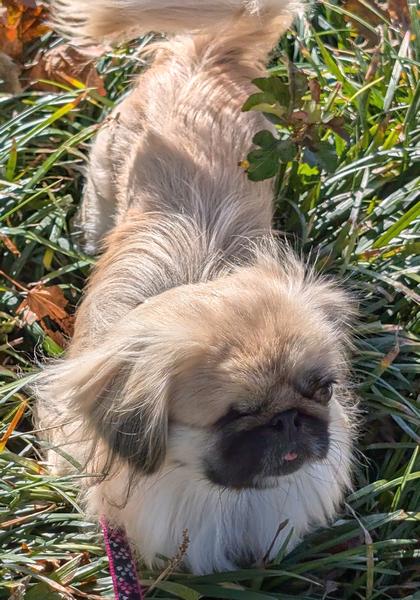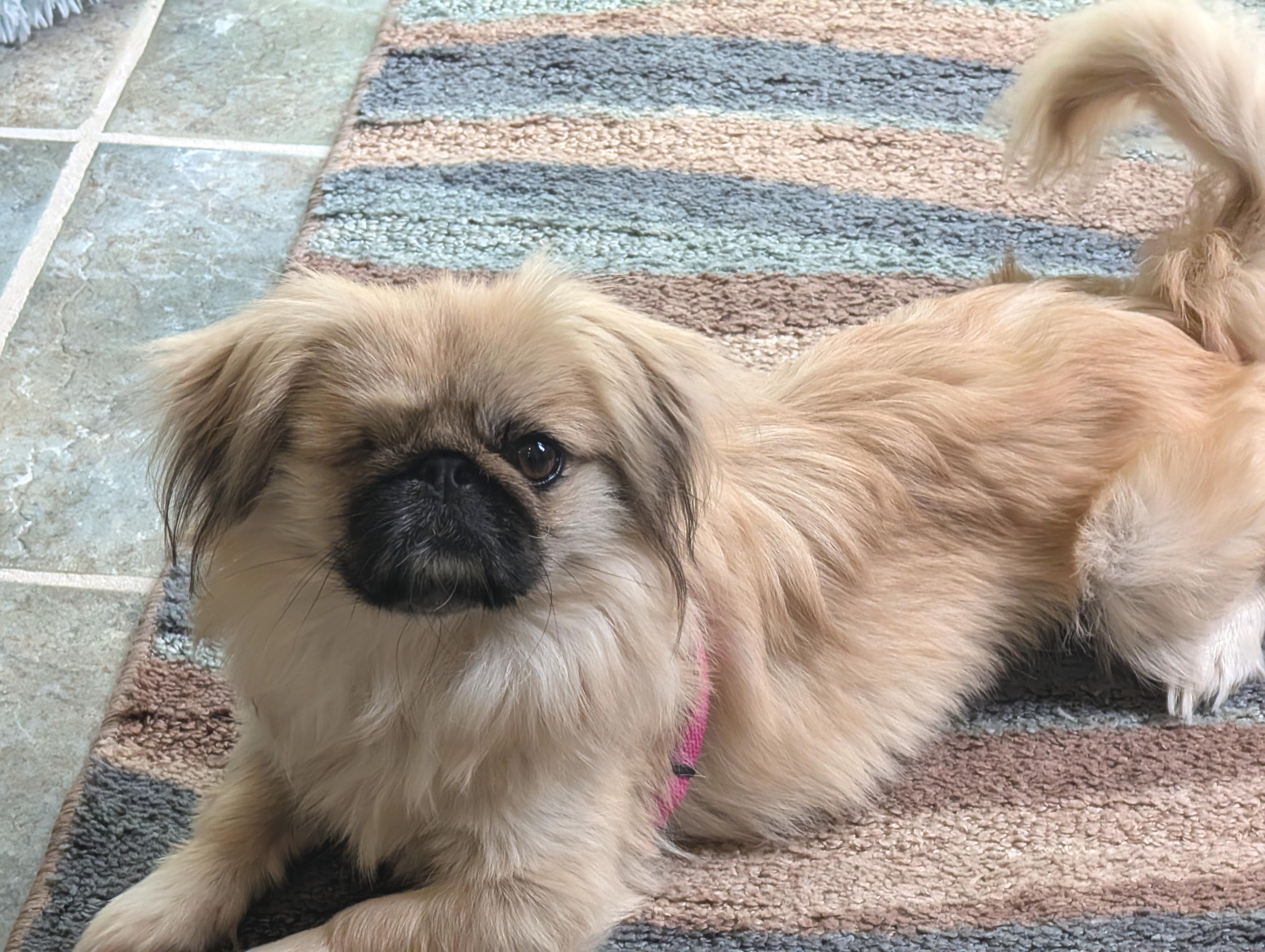 Pika Pika is shy when meeting new people (particularly men), but once she is comfortable, her puppy-like personality shines. She loves to play with the other small dogs in her foster mom’s home. We prefer her adopter have experience with the Pekingese breed and be aware of how important it is to keep her safe so nothing happens to her good eye. She is doing well with house training and leash walking, but loud noises or strange objects can startle her on walks and she will balk.. Pika Pika will do best in a home with another small social dog, preferably Pekingese, so she can continue to learn from the other dog. She walks best when she is with a social doggie companion. She is VERY fast shooting out the door, can jump high and gets really fired up doing yard and house zoomies, especially in the afternoon and evening before dinner. Click here to read more information about Pika Pika (opens a new page)For information about the Pekingese breed click here